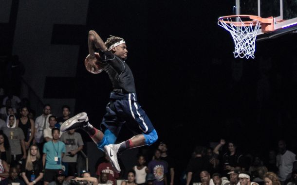 Kevin Lamar dunks it and fetches the cup