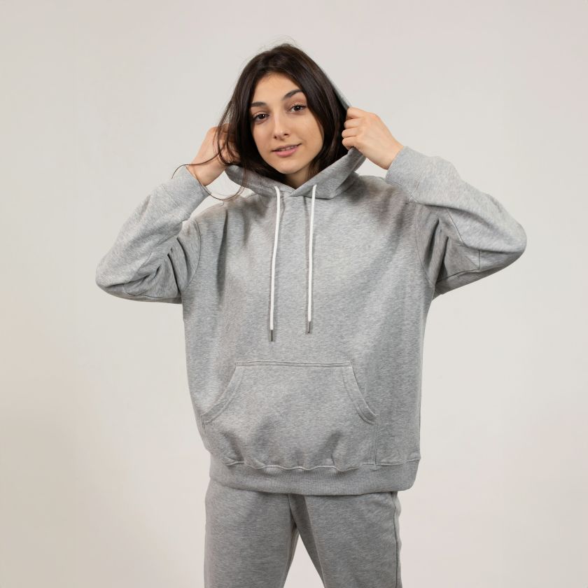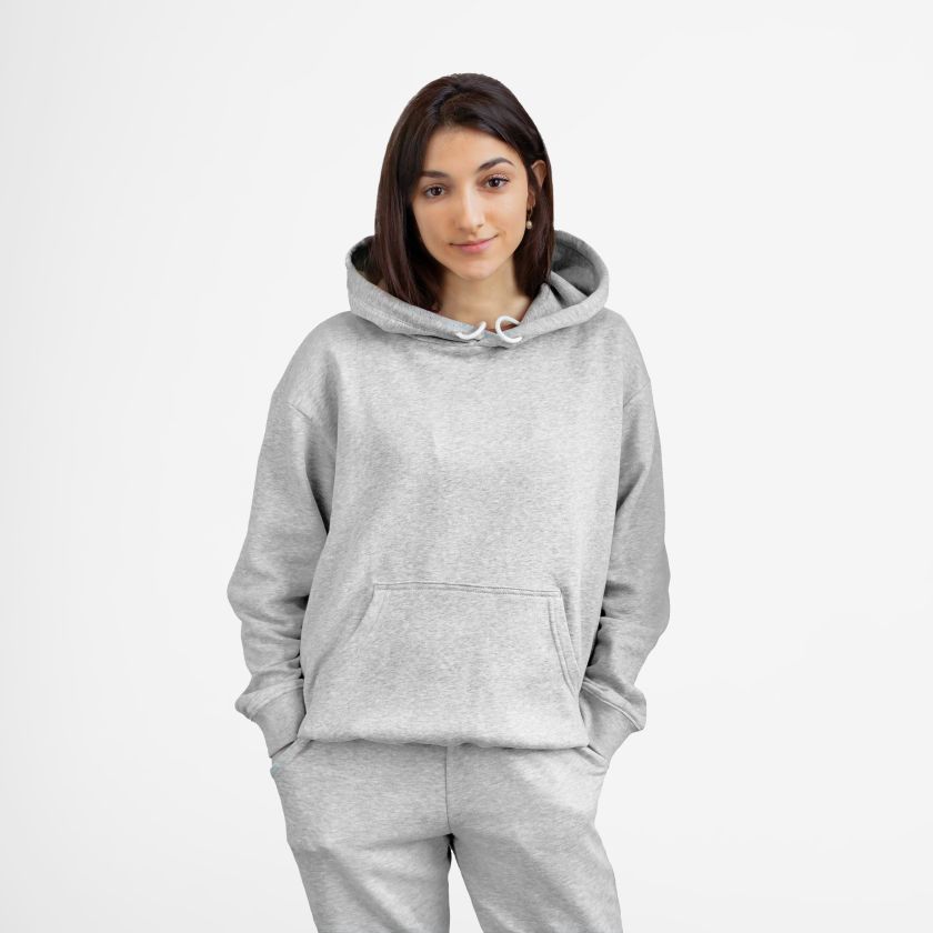 • Oversized, relaxed fit with hood and long sleeves