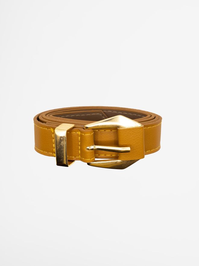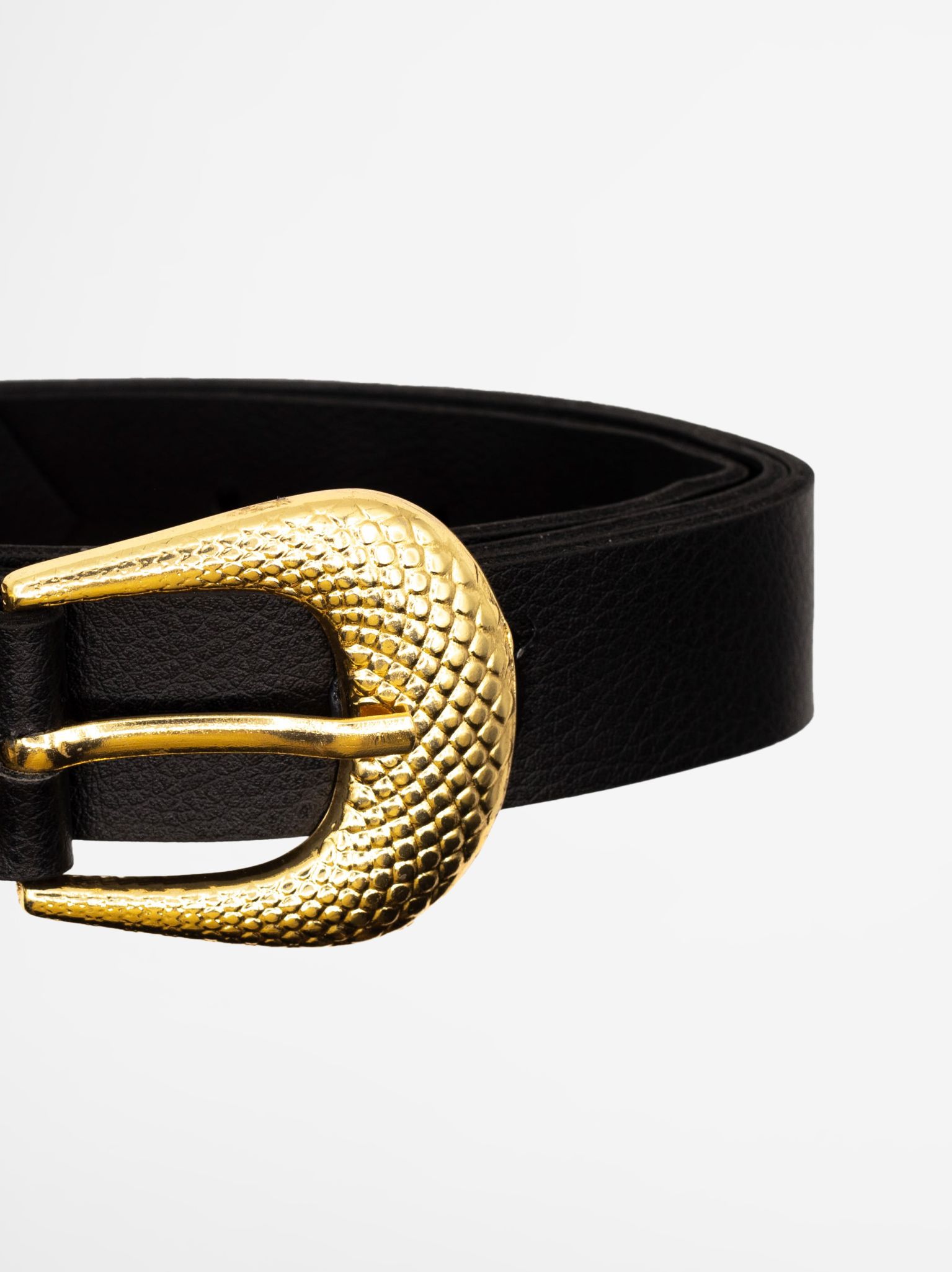 Black Leather Belt With Gold Buckle