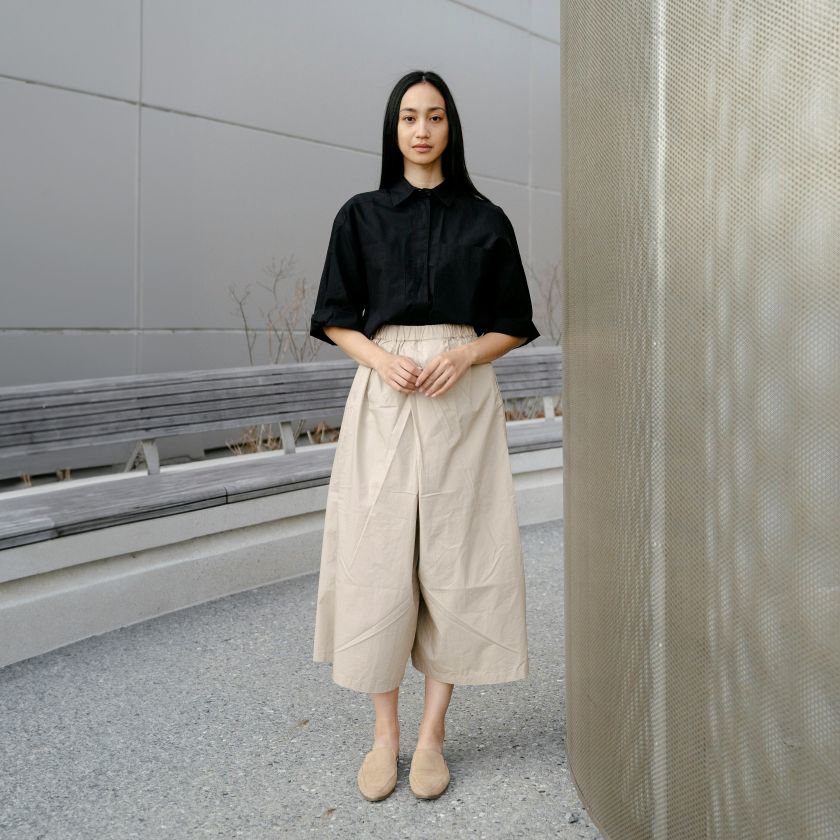 Flared Cotton Button Down Shirt