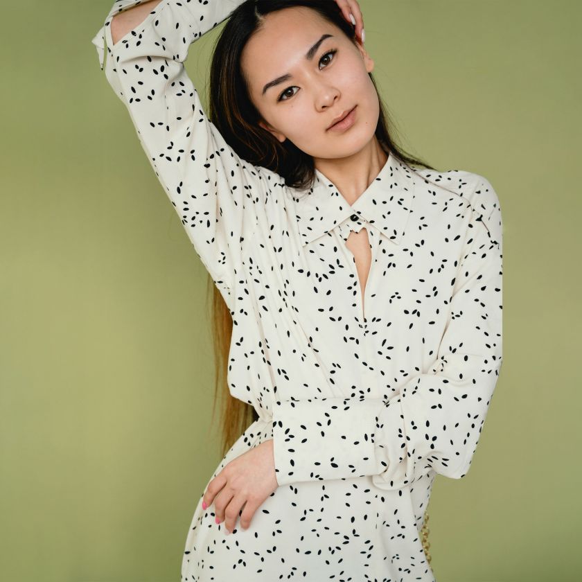 Dotted Long-Sleeve Blouse